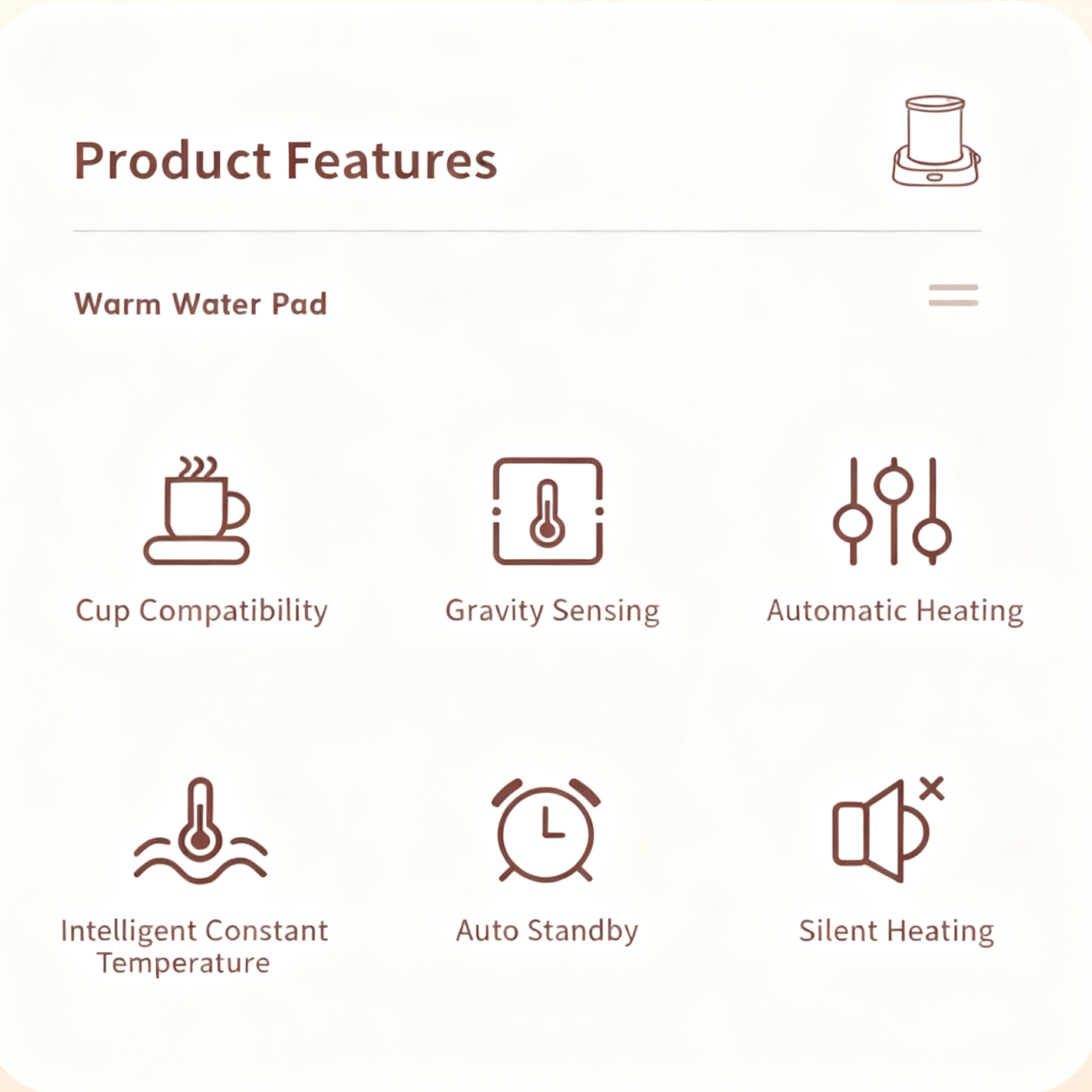Practical Warmth: 55°C warming technology keeps drinks at perfect temperature