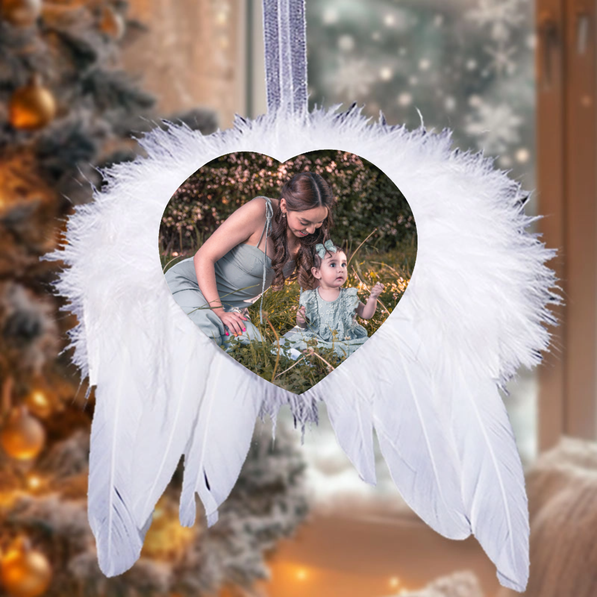 Angel Feather Personalized Photo Ornament, Personalized Gift for Family, Couples, Pet Lovers, Perfect for Christmas Tree, Anniversary Celebration