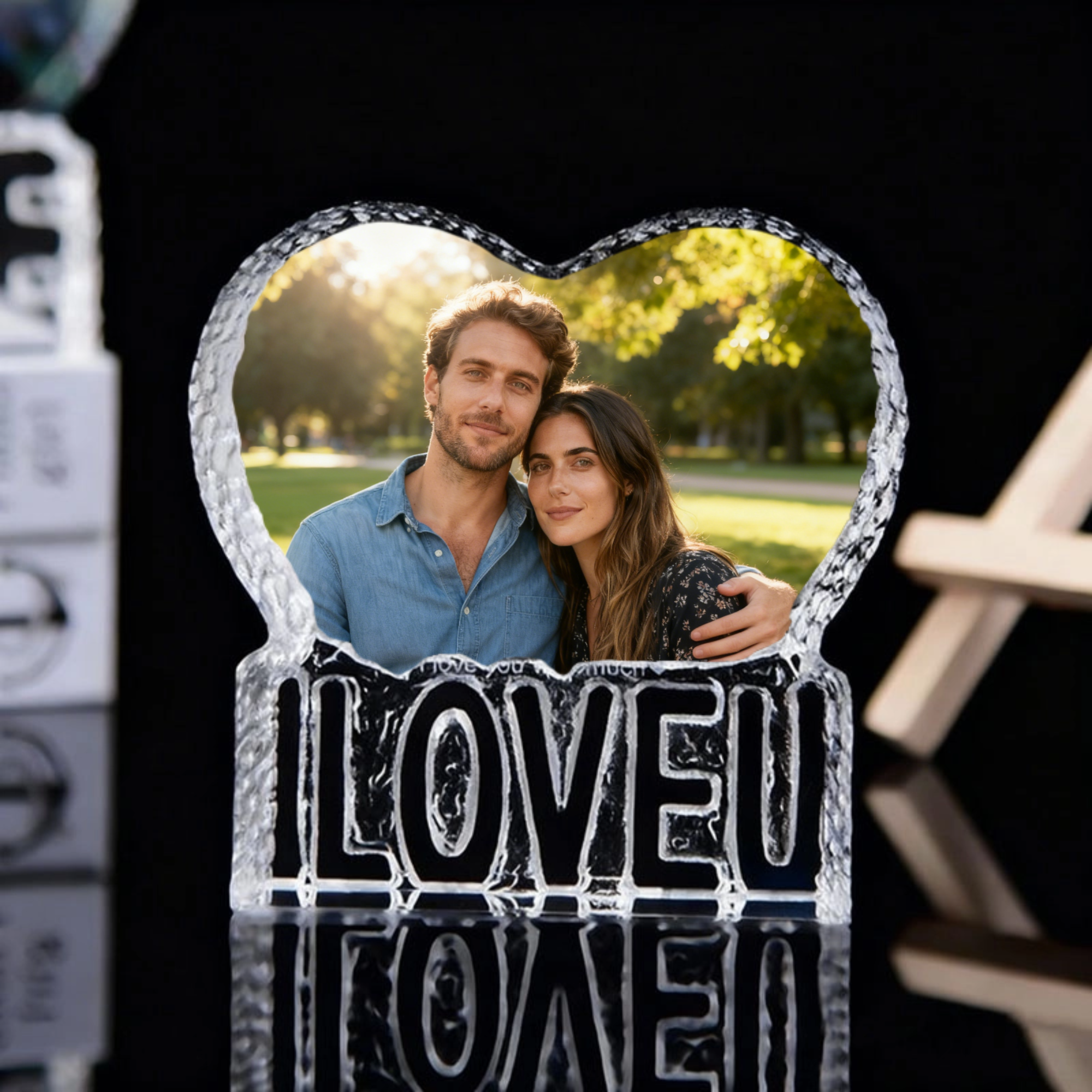 Celebrate your unique love story with our I LOVE U Heart Shape Photo Stand. This elegant crystal-clear heart features a beautiful "I LOVE U" engraving and a custom space for your favorite couple photo. Whether it's a romantic beach embrace, a cozy moment together, or a special kiss, this stunning keepsake turns your precious memories into a beautiful display piece. Perfect for desks, shelves, or as a heartfelt gift that says "I love you" every day.