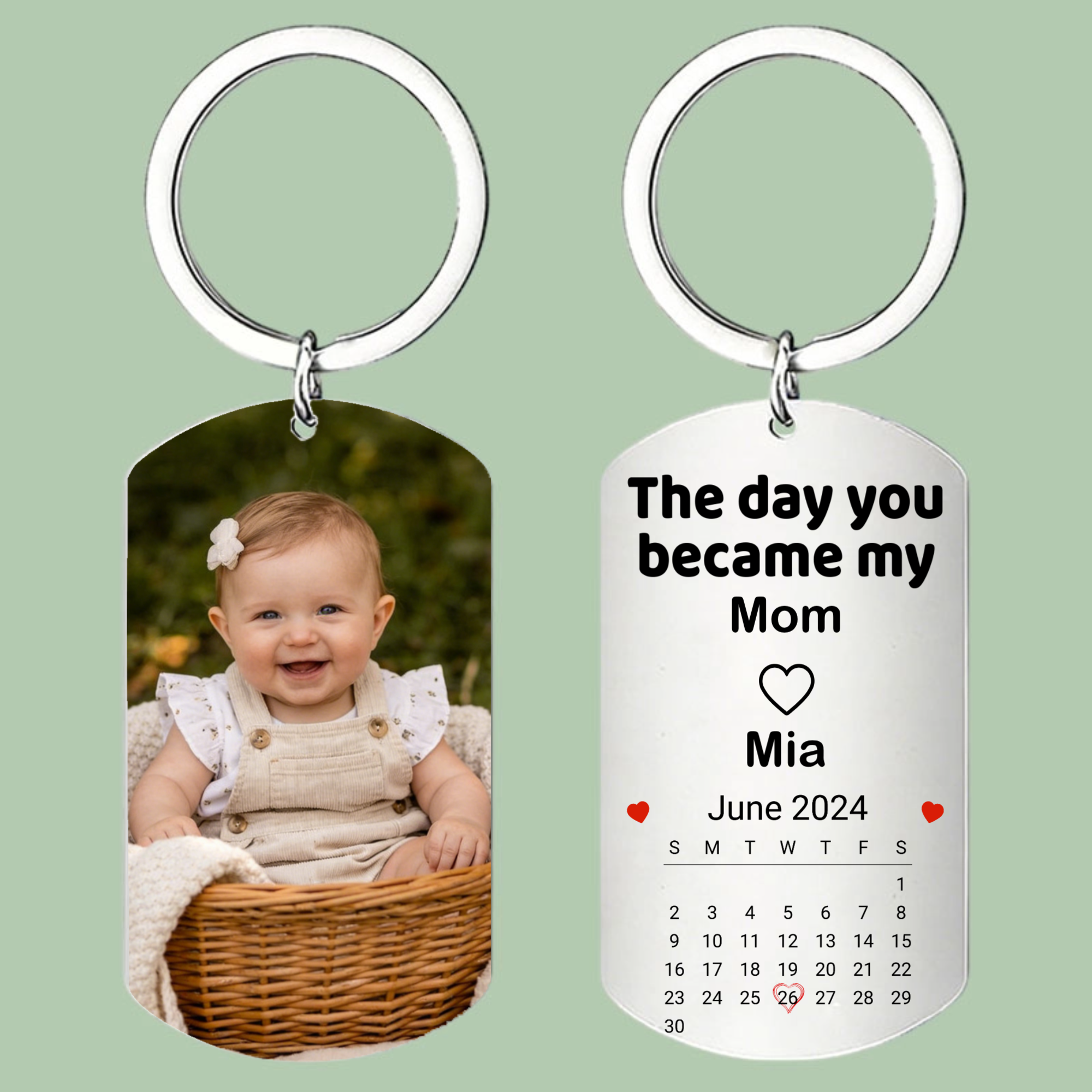 The Day You Became My Mom/Dad Personalized Keychain, Gift for New Parents, Baby Shower, Perfect for Mother’s Day, Father’s Day, Newborn Celebration