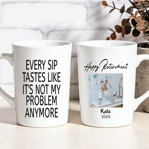 Say goodbye to the daily grind with a gift that gets it! Our "Not My Problem" Personalized Retirement Mug is the perfect, hilarious way to honor someone starting their new chapter. One side boldly declares the joy of retirement with the iconic phrase, while the other is a heartfelt personalized tribute. Upload a photo of the retiree, add their name and retirement year, and give a gift that perfectly balances humor and sentiment. Every sip will remind them they’ve earned it!