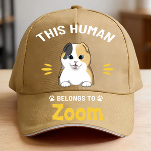 This Human Belongs To Pet Custom Baseball Cap, Gift for Pet Lovers, Dog & Cat Owners, Perfect for Casual Wear, Daily Outing, Pet Celebration