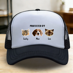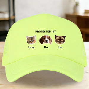 Show off your most loyal companions with our personalized "Protected By" baseball cap. This comfortable cotton hat is the ultimate accessory for pet lovers. You can proudly display 1-4 of your beloved pets on the front, customize with their names, and choose from 10 vibrant colors. Featuring the bold declaration "PROTECTED BY" and classic paw prints, it’s a fun and meaningful way to celebrate your furry family every day.