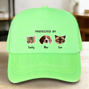 Protected By Pet Photo Sponge Mesh Baseball Cap, Cozy Knit Hat Gift for Pet Owners, Lovers, Perfect for Christmas, Birthday, All Occasions