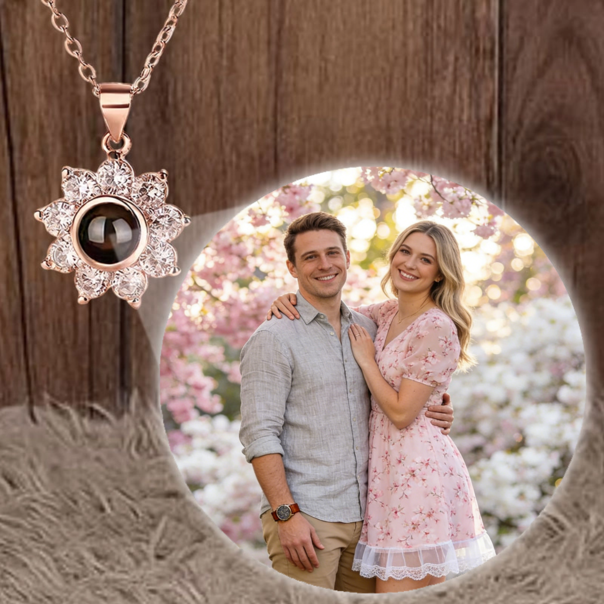 Carry the most precious moments, always close to your heart. Our exquisite Flower-Shaped Projection Necklace is more than jewelry; itâs a wearable magic box. The elegant rose-gold pendant, inspired by a delicate flower, features a special black lens that projects a cherished photo when light shines through. Upload any imageâa loving couple, a joyous family, or a special sceneâand let it tell your story. Perfect for gifting a memory that shines.