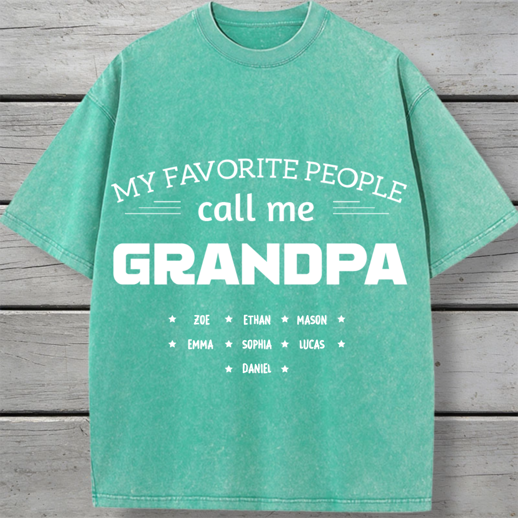 Celebrate the special manâDad, Grandpa, Pop Pop, or Papaâwith a T-shirt that tells his story. Our vintage washed cotton tee is the perfect way to honor him and the people who make him feel loved. Choose a title that fits him, add the names of 1-10 of his favorite people (kids, grandkids, friends), and create a one-of-a-kind gift thatâs uniquely his. Itâs a cozy, everyday reminder of the family and friends who cherish him most.