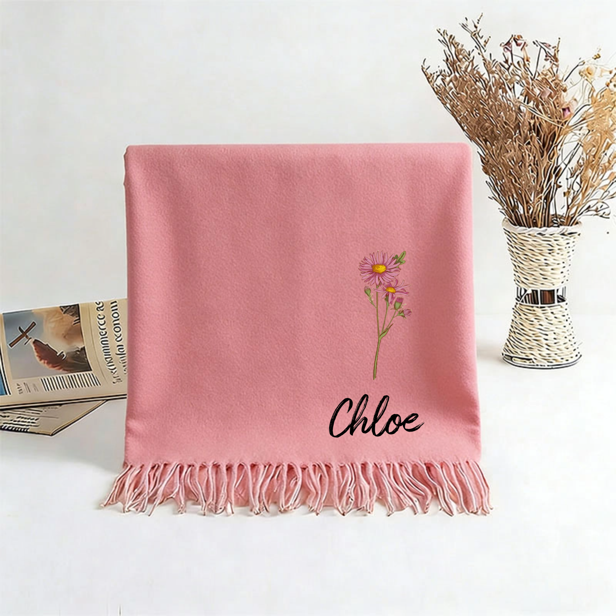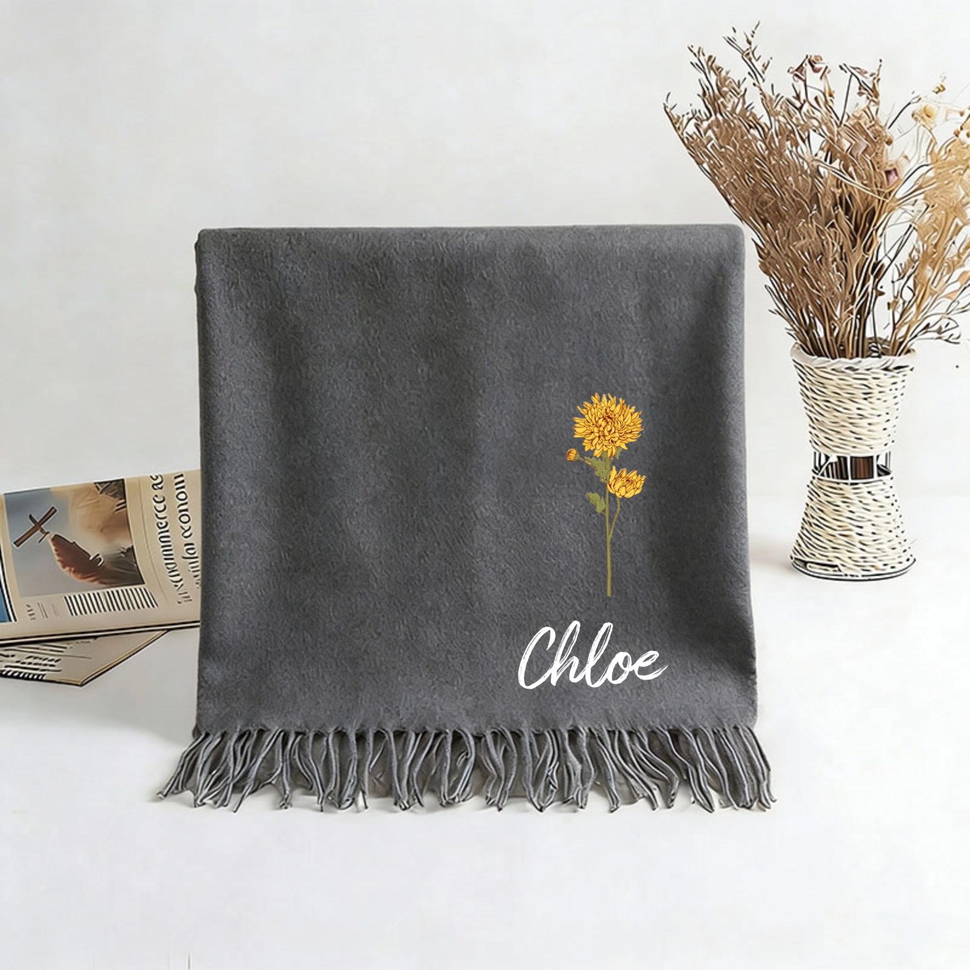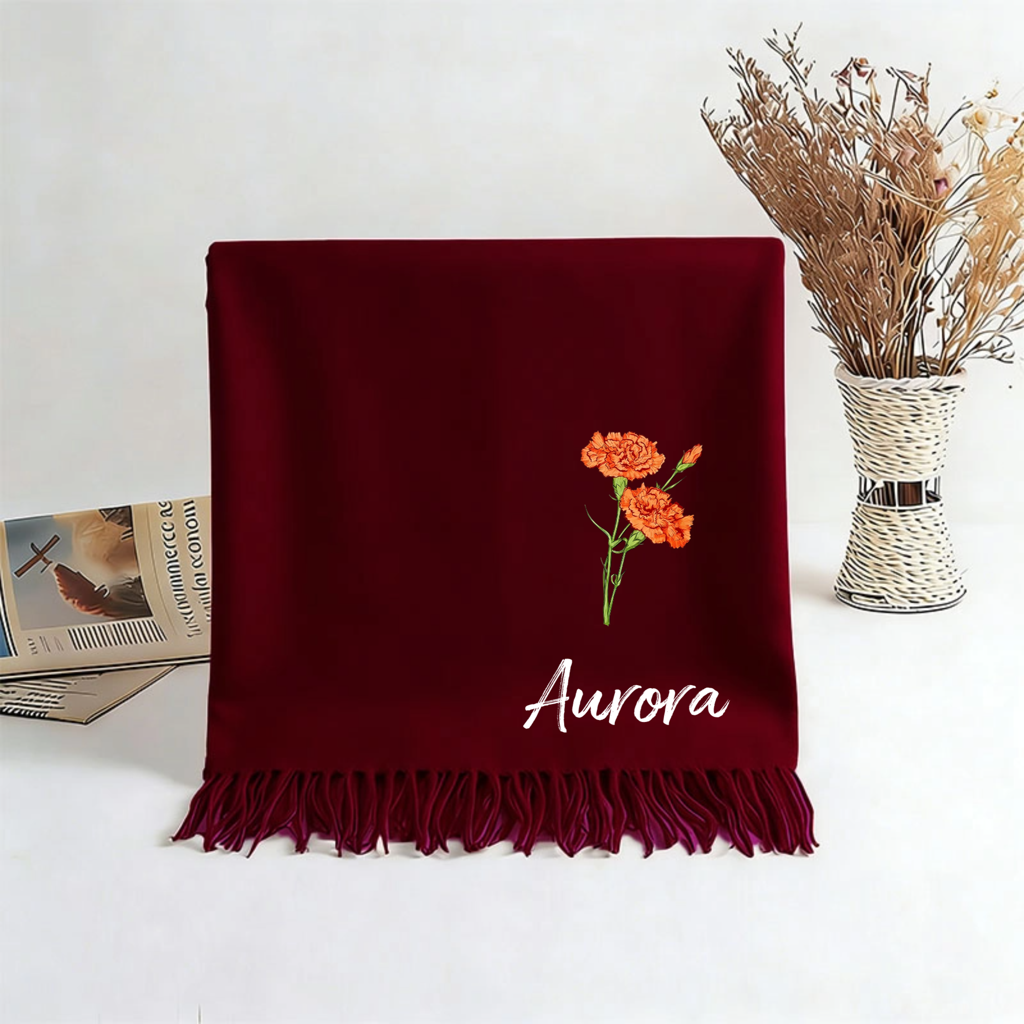 Personalized Birth Flower Soft Warm Tassel Scarf, Birthday Gift for Women Men, Perfect for Holidays, Special Occasions
