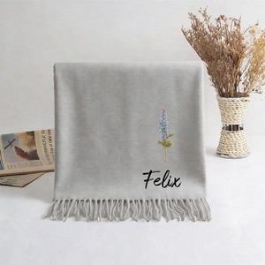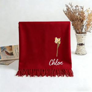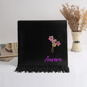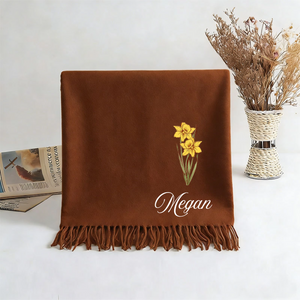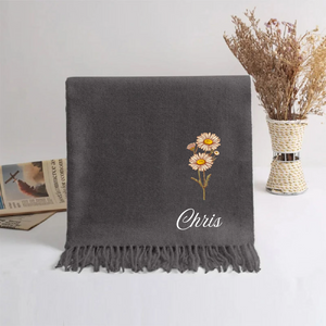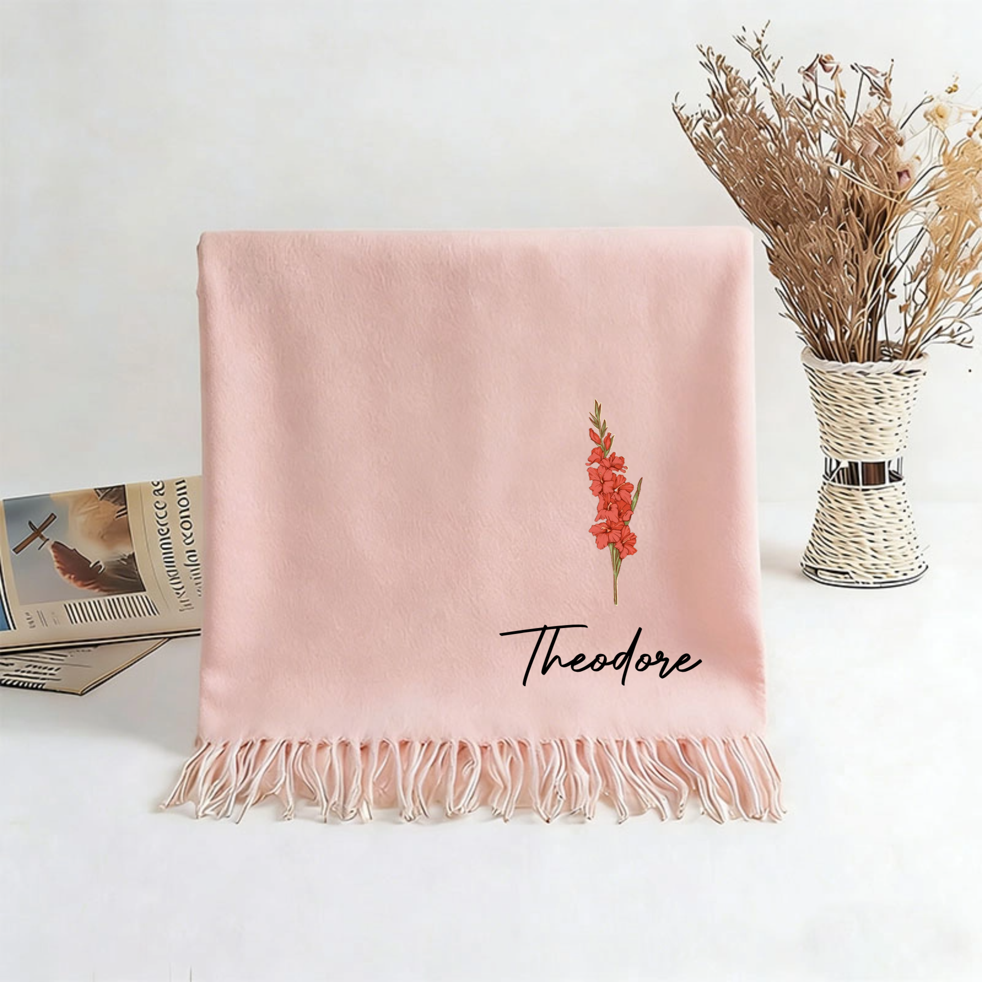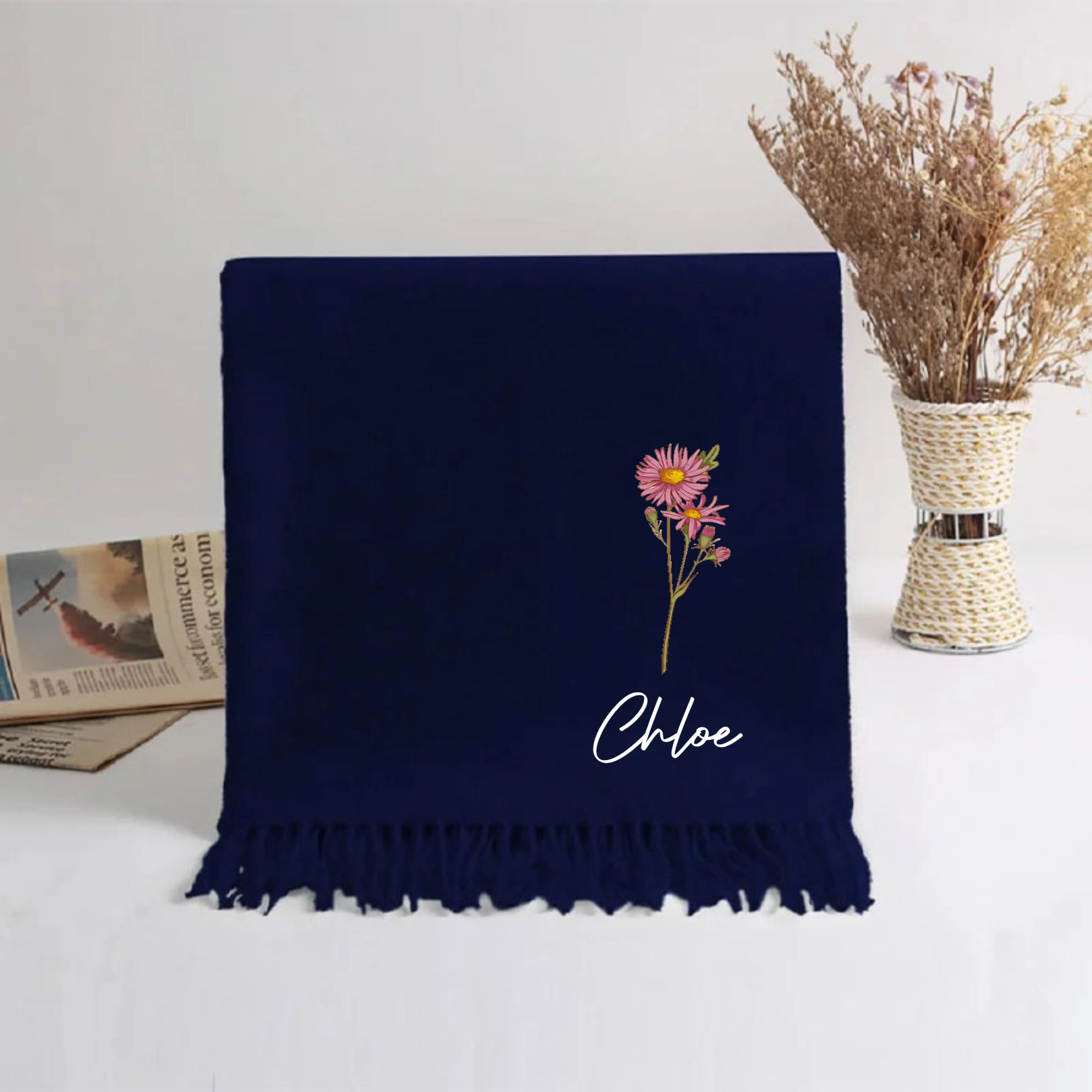Personalized Birth Flower Soft Warm Tassel Scarf, Birthday Gift for Women Men, Perfect for Holidays, Special Occasions