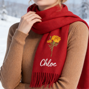 Celebrate a life, a season, or a special connection with a scarf thatās as unique as the person wearing it. Our Birth Month Flower Personalized Scarf is a thoughtful blend of beauty and personal sentiment. Choose the flower that marks a special month, add a cherished name, and select the perfect font and color to complete the design. Soft, warm, and made to be a lasting keepsake, itās the ideal gift to wrap someone in love and personal meaning.