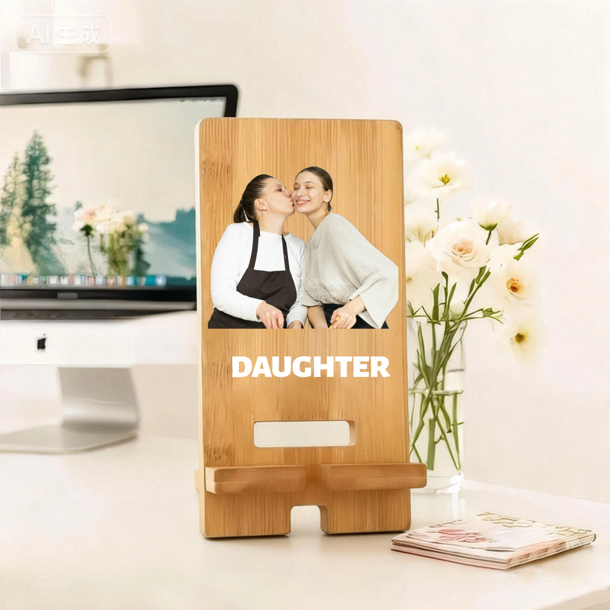 Bamboo Personalized Phone Stand, Mother, Father, Children, Perfect for Birthdays, Mother's Day, Father's Day