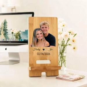 Turn your most cherished moment into a daily keepsake. Our personalized bamboo phone stand elegantly combines function and sentiment. Upload a favorite photo of you and your loved one, engrave both of your names with a heart, and add a significant date. Crafted from natural bamboo, it securely holds your phone while beautifully displaying the memory that matters most. Itās the perfect, heartwarming gift for couples celebrating a milestone, a first date, or a lifetime together.