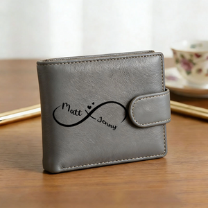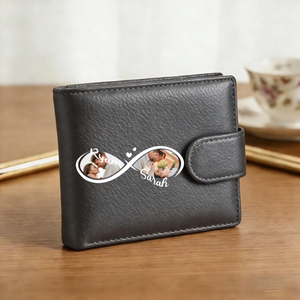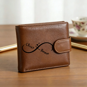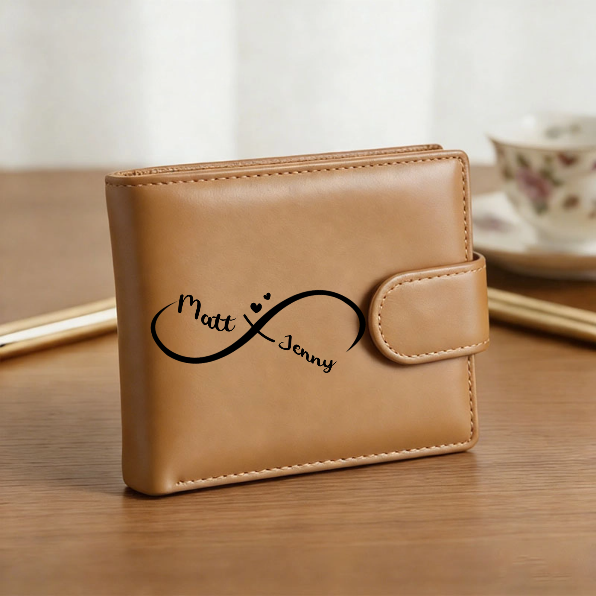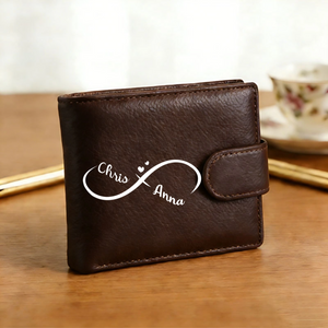 Infinity Heart Custom Genuine Leather Wallet, Genuine Leather Men, Gift for Couples, Anniversaries, Weddings, Valentine’s Day