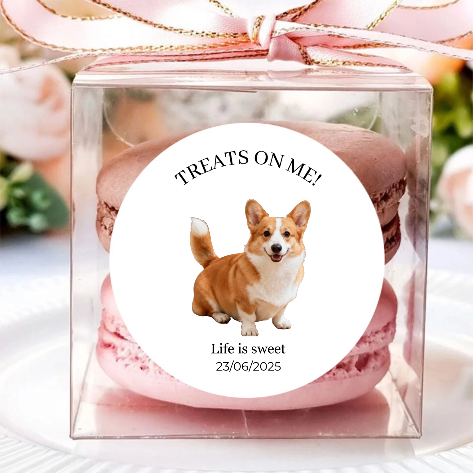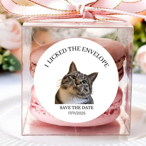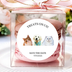 Let your furry family join the celebration! These waterproof, 5cm round stickers add a dose of personality and love to macaron boxes, invitations, or any decor, creating a memorable keepsake for your guests.