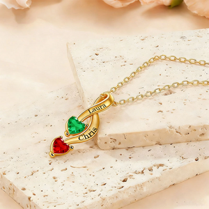 Celebrate a bond thatâs as endless as an infinity symbol. Our personalized necklace features a beautifully curved, infinity-inspired copper bar pendant, elegantly set with two heart-shaped birthstones. Crafted with quality materials and a delicate cross chain, itâs a timeless, wearable token of love, family, or friendship, perfect for any milestone.