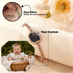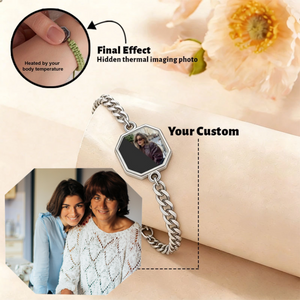 Discover the magic hidden within. This unique thermal-imaging photo bracelet features a sleek octagon pendant that conceals a special image. Simply upload any photo—of a loved one, a cherished memory, or a personal icon. When warmed by your body temperature, the pendant reveals your hidden image, turning a simple accessory into an intimate, interactive secret. Crafted with a durable titanium steel chain and hypoallergenic plating, it’s a perfect blend of mystery, sentiment, and style for everyone.